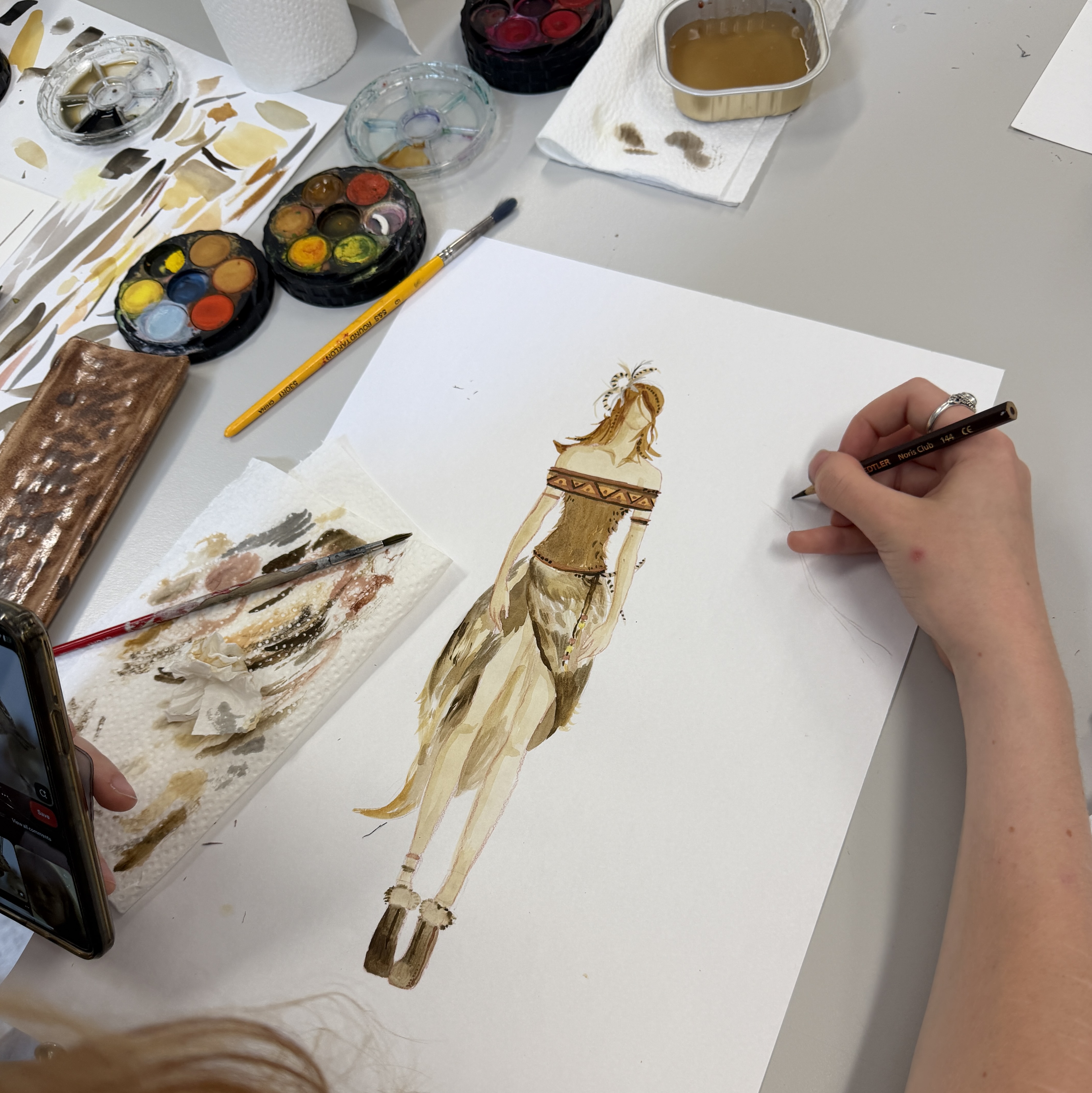 The Fashion Group told us they had been working on their techniques and designs this week, as well as starting to test fabrics for their prototype pieces. One student said they were currently creating a rough version of one of their designs so they could see how it fits and moves. “It’s not the final version, but it helps us figure out what needs to change”, they explained.